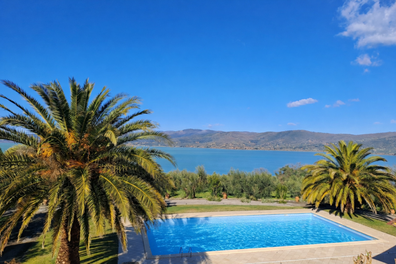 In una delle cornici più esclusive e panoramiche del Lago Trasimeno, a pochi minuti da San Feliciano, noto come il “paese dei tramonti sul lago”, e dal vivace lungolago di Passignano sul Trasimeno, proprietà di assoluto prestigio, sapientemente ristrutturata e inserita in un contesto di rara quiete e straordinaria bellezza naturale. La dimora è inserita in un elegante complesso residenziale immerso in un parco perfettamente curato di circa 3.500 mq, che è in comune con l'altra porzione di casale posta al piano terra. La porzione di casale, realizzato in autentica pietra, si sviluppa al piano primo con ingresso indipendente e gode di una vista lago straordinaria, ampia e dominante, capace di regalare tramonti spettacolari e scorci di incomparabile fascino in ogni stagione. L’abitazione, di circa 240 mq, si raggiunge tramite una caratteristica scalinata in pietra che conduce a una graziosa loggetta d’ingresso. Gli ambienti interni, frutto di una ristrutturazione attenta e di alto livello, si distinguono per l’accurata scelta dei materiali e per le finiture di pregio, in perfetto equilibrio tra tradizione e comfort contemporaneo. La zona giorno si apre su un ampio e luminoso soggiorno con camino, affiancato da uno studio, entrambi impreziositi da affacci diretti sul lago che donano luce e profondità agli spazi. La cucina, spaziosa e abitabile, è ideale per momenti conviviali in un contesto caldo ed elegante. La zona notte, con raffinata pavimentazione in parquet, comprende due camere da letto, un bagno e una lavanderia. Salendo di soli quattro gradini si accede a un livello rialzato che ospita ulteriori due camere matrimoniali, entrambe dotate di bagno en-suite, garantendo il massimo della privacy e del comfort. Completa la proprietà un garage privato di circa 36 mq. In comune con l’unità al piano terra troviamo, oltre al parco, la caratteristica sala giochi (ricavata dall’ex mulino/deposito), la piscina panoramica, un ulteriore locale deposito e i due accessi carrabili con vialetto pavimentato. Una residenza di grande charme, perfetta per chi desidera vivere immerso nella bellezza del lago, in un contesto esclusivo, con vista impareggiabile, finiture di alto livello e un’autentica anima umbra. Ottima opportunità anche come investimento, ideale per affitti turistici di lusso.