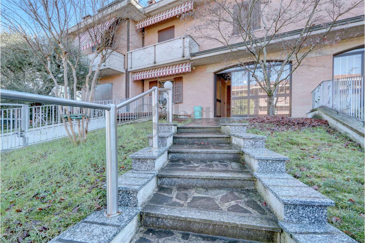 Casa di testa libera sui lati con giardino privato, situata in zona residenziale tranquilla e ricercata. L’immobile, disposto su due livelli fuori terra oltre a seminterrato, gode di tripla esposizione che garantisce ambienti luminosi tutto il giorno. Al piano terra zona giorno con zona soggiorno, zona pranzo e una cucina separata. Al piano superiore due camere, terrazze, ripostiglio e bagno. Al piano seminterrato taverna con caminetto, bagno e ampio garage con angolo lavanderia. Giardino piantumato con ingresso pedonale indipendente, pergola e tettoia per due auto con cancello scorrevole. Dotata di allarme, aria condizionata, tende elettriche, esterni recentemente tinteggiati. Nessuna spesa condominiale. Libera al rogito.