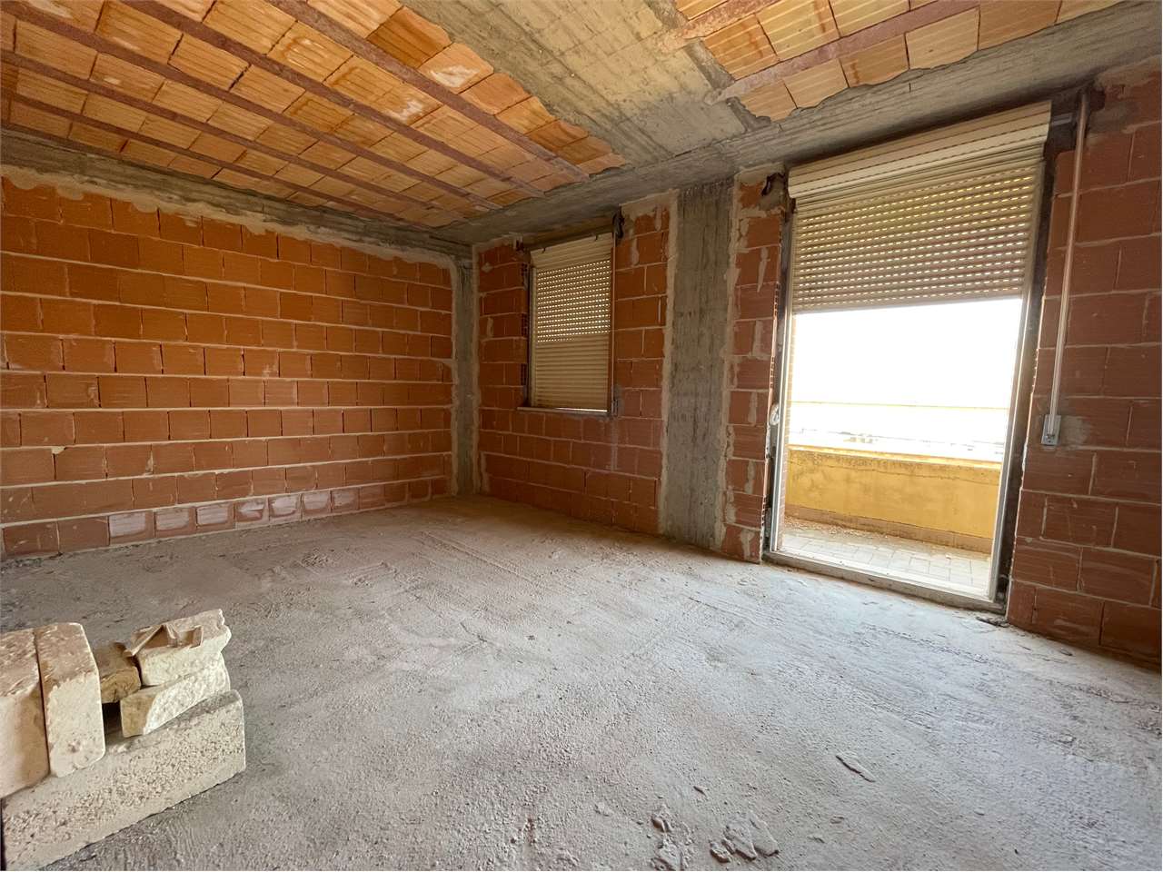 In zona centrale, si propone in vendita un appartamento di circa 130 mq situato al primo piano di un piccolo condominio di solo due unità abitative, dal quale si gode di un'ottima vista panoramica. L'immobile è rifinito esternamente, con mattoncini, è dotato di isolamento termico, come anche è rifinito il vano scala con il portone d'ingresso e le finestre nel vano scala. Internamente l'appartamento risulta allo stato grezzo con muri divisori che dividono gli ambienti in tre camere da letto, cucina, sala, due bagni e ripostiglio. Completa la vendita al terzo piano la sovrastante porzione di terrazzo esclusivo di circa 40 mq e la piccola mansarda di 20 mq circa. Il prezzo richiesto è di 90.000