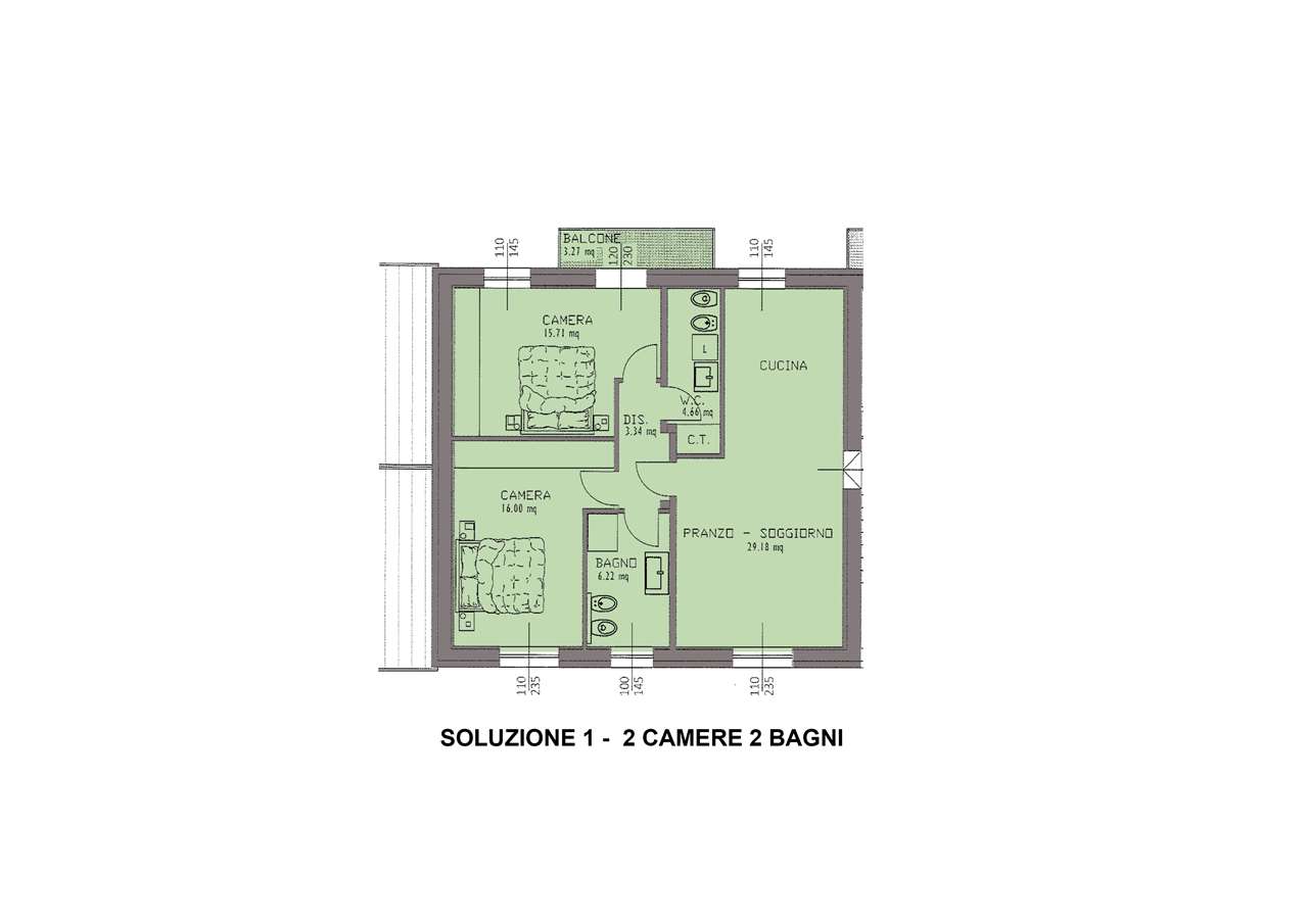 Zona Canali - Appartamento nuova costruzione, tre camere (<strong>Rif. <u>CT0137-4</u></strong>)<br><br>Appartamento di nuova costruzione con 135 mq di superficie, sito al secondo ed ultimo piano, così composto:<br>Ingresso su soggiorno con loggia di 19 mq comunicante con la cucina/sala da pranzo e terrazzo di 72 mq, disimpegno, due bagni (di cui uno cieco) e tre camere da letto matrimoniali.<br>Ogni alloggio comprende una cantina, un garage ed un posto auto privato, tutti inclusi nel prezzo.<br>L'alloggio è in fase di costruzione, la consegna è prevista per Giugno del 2025.<br>Gli immobili saranno realizzati con le più moderne tecniche e materiali, nel rispetto dell'ambiente e con un occhio di riguardo verso i consumi energetici; <br>Ampia possibilità di personalizzazione nella scelta dei materiali su campionatura fornita dalla ditta costruttrice.<br>L'immobile sarà comunque dotato di: predisposizione per impianto di irrigazione autonomo, serramenti in legno di vetro camera temperato, predisposizione per zanzariere, scuri esterni in alluminio, porta blindata, videocitofono, pavimenti in gres porcellanato e ceramica, autorimesse automatizzate, split con pompa di calore ed impianto fotovoltaico con potenza di 15,75 Kw.<br>Classe energetica A3.