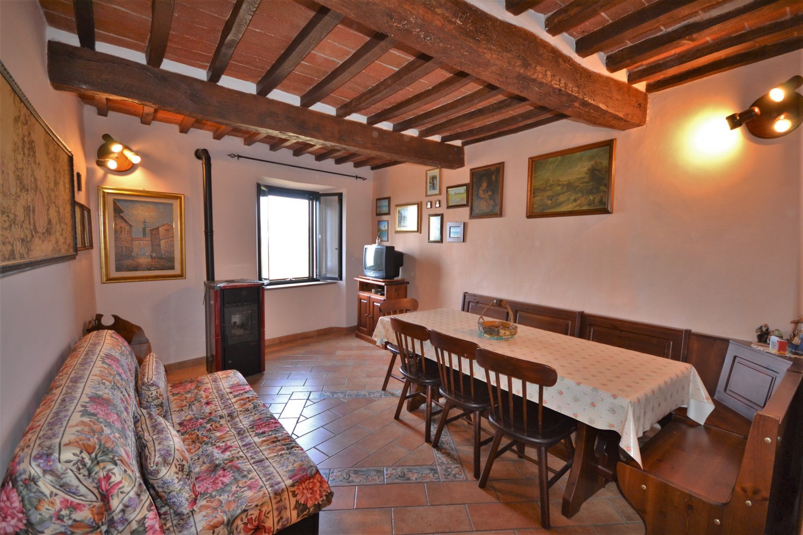 In un piccolo borgo di campagna a pochi chilometri da Fabro, grazioso cielo-terra con giardino e finiture tipiche.La proprietà si sviluppa su due livelli e comprende:Piano terra: soggiorno con angolo cottura , piccolo spazio esterno pavimentato e appezzamento di terreno di circa 800 mq a poca distanza dal fabbricato;Piano primo: camera matrimoniale, cameretta e bagno.Presenta le tipiche finiture dei casali con facciata in pietra e mattoni, travi a vista. Immediatamente abitabile. Molto luminoso e panoramico.Riscaldamento autonomo a GPL. Un immobile perfetto come fuga dalla città e per essere messo a reddito nel circuito delle case vacanza. A poca distanza dal confine con la Toscana. Nelle vicinanze le cittadine di San Casciano dei Bagni e le sue terme, Cetona, Città della Pieve, Orvieto.
