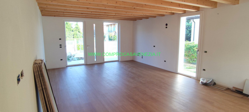 Nel cuore della tranquilla zona residenziale di Zelarino, nel Comune di Venezia, proponiamo in vendita porzione di testa di casa a schiera realizzata secondo i più moderni criteri della bioedilizia. L'immobile si sviluppa su due livelli per un totale di circa 124 mq e gode dell'assenza totale di spese condominiali. La proprietà colpisce subito per la luminosità degli ambienti interni grazie alle ampie vetrate che affacciano sul giardino esclusivo disposto su tre lati (circa 130 mq). Al piano terra troviamo uno spazioso soggiorno open space con cucina a vista – caratterizzato da pavimenti effetto legno e soffitti con travi a vista –, oltre ad un comodo bagno finestrato. Una scala in legno conduce al primo piano dove sono presenti una camera matrimoniale, una camera doppia, una camera singola ed un ulteriore bagno finestrato. Tra le dotazioni distintive segnaliamo l’impianto fotovoltaico da 6 kW completo di batterie d’accumulo, garantendo così eccellenti prestazioni energetiche e risparmio sui consumi; il sistema costruttivo BIO T-34 ancorato alla fondazione in calcestruzzo armato assicura protezione anti-umidità; l’isolamento termico è affidato ai pannelli esterni in pino francese idrorepellente abbinati a strati isolanti naturali come il sughero e lana di roccia; gli interni sono rifiniti in fibrogesso resistente agli agenti atmosferici. Completano l’offerta due posti auto interni ed il potenziale edificatorio residuo che permette la realizzazione futura di una pompeiana, personalizzando ulteriormente gli spazi esterni secondo necessità familiari. Situata vicino ai principali servizi, mezzi pubblici ed allo svincolo autostradale, questa soluzione rappresenta l’opportunità perfetta sia per famiglie sia per chi cerca comfort abitativo moderno ed ecosostenibile senza rinunciare alla comodità dei collegamenti urbani. Per ulteriori informazioni o fissare una visita contatta AGENZIA COMPROCASA al numero 041/8021935 oppure via WhatsApp al 393483884014. Se devi prima vendere il tuo immobile attuale, offriamo servizio gratuito di valutazione: chiama ora per fissare un appuntamento conoscitivo! NS Rif RC509T