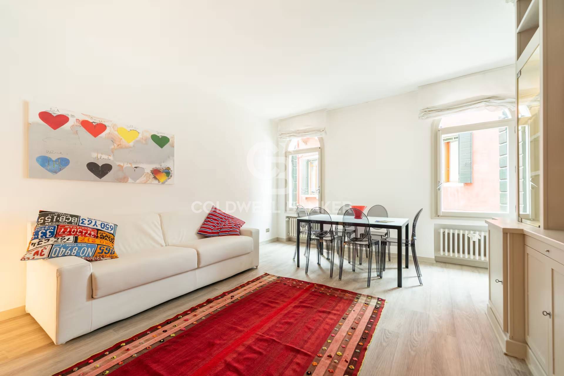 Venezia San Polo Campo San Stin appartamento vista campo. <br><br>In posizione comodissima a Piazzale Roma e alla Stazione, a due passi dalla basilica dei Frari. <br><br>Proponiamo in vendita un appartamento situato al primo piano in contesto di palazzina ben tenuta. <br><br>L'immobile si compone di ingresso, soggiorno, cucina, due camere, due bagni e ripostiglio. <br><br>La proprietà comprende un piccolo magazzino al piano terra. L'appartamento è caratterizzato da ottima luminosità grazie alle finestre ad arco dalle quali si gode di un gradevole scorcio tipicamente veneziano sul campo, sul canale e sul ponte. <br><br>Ottime condizioni di manutenzione, riscaldamento centralizzato con termo-valvole, aria condizionata.