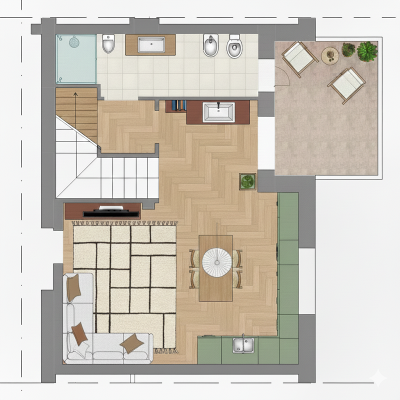 In prossima realizzazione 4 villette a schiera su due livelli composta da Ampia zona giorno di circa 41 mq, (soggiorno-Cottura), bagno, garage al piano doppio per larghezza, giardino , al piano primo tre camere , di cui camera da circa 20 mq con bagno comunicante e cabina armadio e terrazzo coperto, due camere doppie. Dotate autonomamente di panelli Fotovoltaico e pompa di calore.