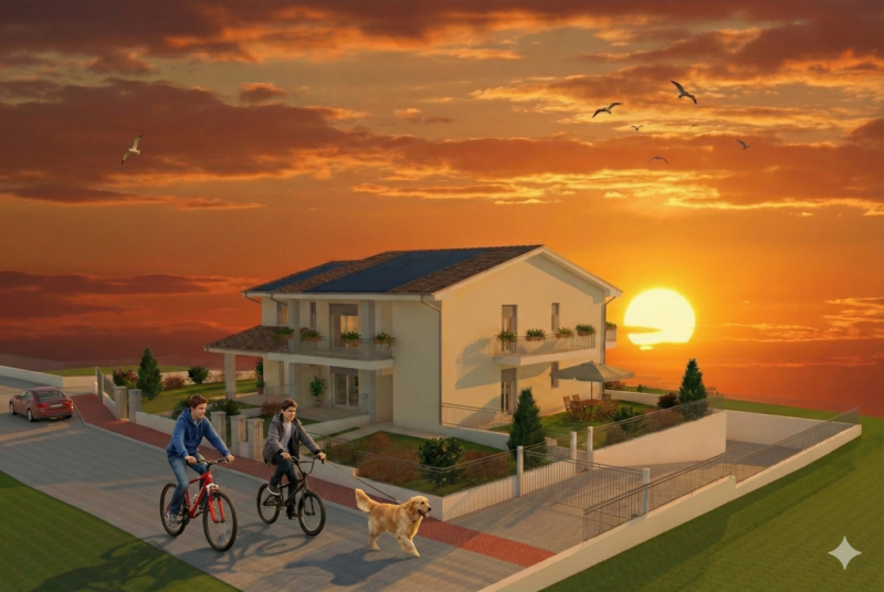 San Bonifacio località Prova: In splendida zona residenziale, vendesi porzione di bifamiliare sviluppata su due livelli. Al piano terra troviamo un'ampia zona giorno, con lavanderia e bagno. Al piano primo 2 camere matrimoniali, una camera singola e un bagno. Il garage è al piano terra che divide le due unità di mq 30 circa. All'esterno, giardino di 240 mq con un'area terrazzata con pergolato accessibile dalla cucina. Consegna dicembre 2025.