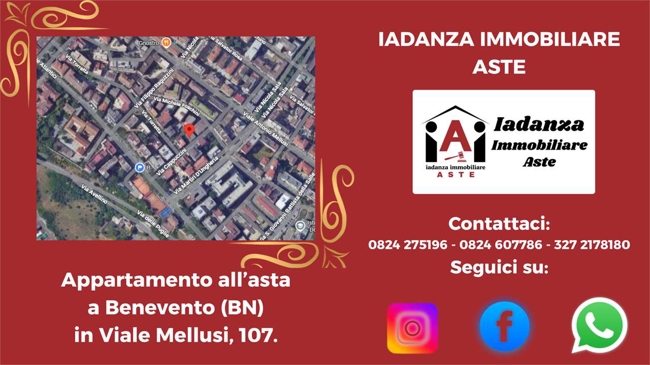 Codice Annuncio: 13AQR219 L4 Offerta Minima: 71.250,00 Prezzo Base: 95.000,00 Valore di Perizia: 127.000,00 Data e Ora dellAsta: 28/04/26 ORE 15:30 Termine Presentazione Offerte: 27/04/26 ORE 12:00 ******************************************************************************** N.B: -Le foto e la geolocalizzazione presenti negli annunci potrebbero essere solo indicative. La documentazione ufficiale invece è disponibile su richiesta e solo essa farà fede sul piano legale .CONTATTARE LO STUDIO PER CONFERMA E PER MAGGIORI INFORMAZIONI ! -La vendita allAsta dellimmobile è stata disposta dal TRIBUNALE DI COMPETENZA e presuppone che linteressato - qualora intenda partecipare in autonomia - abbia piena conoscenza e consapevolezza dei contenuti di tutta la documentazione riguardante la PROCEDURA se non intende rivolgersi ad un Professionista del Settore ! -Per avere maggiori informazioni o per richiedere un sopralluogo potrai contattarci ai seguenti recapiti : Tel: 0824.607786 - 0824.275196 - 327.2178180 Mail: info@iadanzaimmobiliareaste.com Web: www.iadanzaimmobiliareaste.com ******************************************************************************** Appartamento all'asta a Benevento (Bn), in Viale Mellusi, 16. L'immobile sorge in zona centrale, munita di tutti i servizi di urbanizzazione primaria e secondaria. L'appartamento è posto al piano quarto di una palazzina di più ampie dimensioni che si sviluppa su cinque piani fuori terra. Al suo interno, l'abitazione è così suddivisa: ingresso, tre camere, due bagni, due ripostigli. ////////////////////////////////SCOPRI LA DIFFERENZA//////////////////////////////////////// Perché sceglierci? PERCHE DI NOI TI PUOI FIDARE! Ti basta compilare la richiesta presente a lato dellannuncio e riceverai tutta lassistenza necessaria per ricercare ed acquistare limmobile che desideri! ////////////////// PROMOZIONI ESCLUSIVE ONLINE///////////////////////// Oltretutto Inviandoci la tua richiesta tramite il FORM DI CONTATTO, presente sulla destra di tutti gli annunci inseriti sul nostro SITO www.iadanzaimmobiliareaste.com otterrai automaticamente: - Una Consulenza gratuita iniziale. - Una polizza Protezione Casa in OMAGGIO! - La restituzione delle spese di istruttoria (solo in caso di aggiudicazione). - Uno Sconto del 3% sul nostro compenso finale. ///////////////// I NOSTRI PUNTI DI FORZA//////////////////////////////////////// Ciò che ci rende unici è il nostro approccio dedicato e professionale, nell'interesse esclusivo del cliente acquirente. Consulenza Gratuita e Professionale: Sempre disponibili per una consulenza senza impegno, con cortesia e professionalità. Indipendenza e Trasparenza: Operiamo su rappresentanza soltanto in favore dellacquirente, senza l'assillo di dover vendere a tutti i costi, garantendo imparzialità e competenze. La nostra reputazione è la tua prima garanzia. Visite Immobiliari Organizzate: Se desideri visionare un immobile, organizziamo la visita in modo completamente gratuito, occupandoci noi di tutte le formalità telematiche necessarie. Istruttoria accurata: A differenza di molti operatori del Settore che si limitano a "smaltire" immobili come "visti e piaciuti", il nostro approfondito esame della pratica (legale, tecnico, condominiale, fiscale, finanziario) ti assicurerà la tranquillità che cercavi. Noi redigiamo una "Relazione di Fattibilità Tecnico/Legale" prima di ogni partecipazione all'asta che sintetizza ogni aspetto della Procedura. Siamo gli unici insomma a "metterci la faccia". Assistenza dedicata passo dopo passo: Il nostro consulente esperto ti assiste in ogni fase, dalla ricerca all'aggiudicazione e anche oltre. Ricerca Personalizzata: Se non hai tempo per la ricerca, inviaci la tua richiesta tramite il SITO e lo faremo noi per te. Chiarezza Contrattuale: Siamo uno Studio di Consulenza Tecnico/Legale, non un'agenzia immobiliare tradizionale. Il rapporto è regolato da un incarico chiaro, sottoscritto dalle parti, senza sorprese per il Cliente. ////////////////// SERVIZI DI BASE INCLUSI/////////////////////////////////////// Offriamo un pacchetto completo per assisterti e consigliarti nella massima sicurezza: Consulenza gratuita (telefonica o su appuntamento). Analisi documentale approfondita in collaborazione con esperti legali, tecnici, notai e commercialisti. Assistenza completa per ogni adempimento: visite, pratiche, firme digitali, domande di partecipazione, saldi, tasse, consegna immobile, sanatorie, ecc. Visita dellimmobile organizzata gratuitamente dal nostro Studio in via telematica. Consulenza creditizia su misura con un esperto di Banca. Supporto Stragiudiziale per analizzare e gestire situazioni debitorie complesse. ------------------------------------------------------------------------------------------------------------------------ CONTATTACI SUBITO Per avere maggiori informazioni o per richiedere un sopralluogo potrai contattarci ai seguenti recapiti : Tel: 0824.607786 - 0824.275196 - 327.2178180 Mail: info@iadanzaimmobiliareaste.com Web: www.iadanzaimmobiliareaste.com