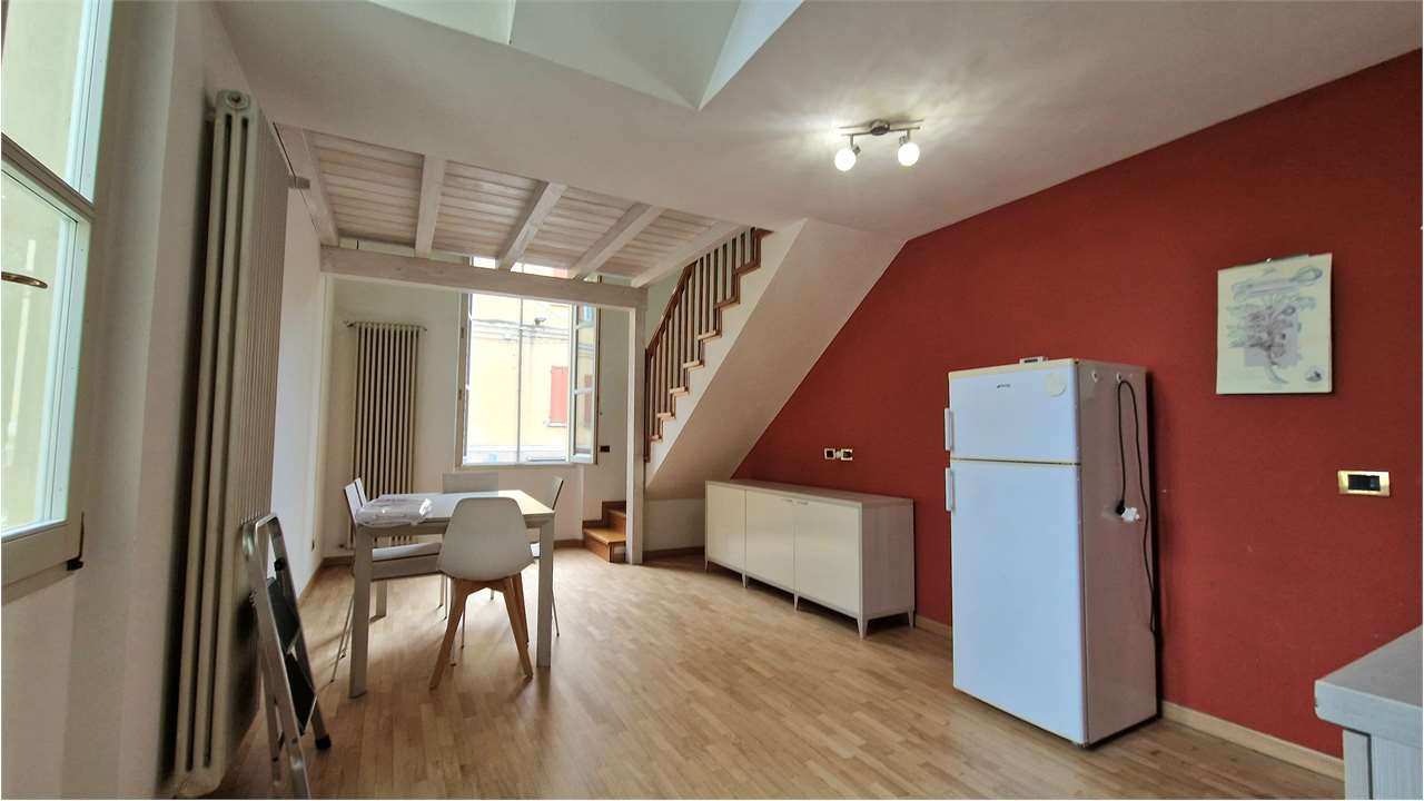 Scandiano, centro storico, caratteristico trilocale disposto su più livelli, ideale per chi ricerca alloggio di stile nel centro paese. L'alloggio è composto da un luminoso soggiorno con cucina open-space con sovrastante soppalco con bagno; al secondo livello una camera matrimoniale e una camera singola. Possibilità di essere adibito a studio professionale.