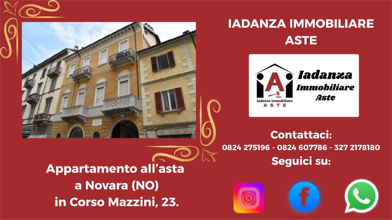 Codice Annuncio: 24AQR+116 LOC Offerta Minima: 203.175,00 Prezzo Base: 270.900,00 Valore di Perizia: 367.517,50 Data e Ora dellAsta: 20/05/2026 ore 10:30 Termine Presentazione Offerte: 19/05/2026 ore 12:00 ******************************************************************************** N.B: -Le foto e la geolocalizzazione presenti negli annunci potrebbero essere solo indicative. La documentazione ufficiale invece è disponibile su richiesta e solo essa farà fede sul piano legale .CONTATTARE LO STUDIO PER CONFERMA E PER MAGGIORI INFORMAZIONI ! -La vendita allAsta dellimmobile è stata disposta dal TRIBUNALE DI COMPETENZA e presuppone che linteressato - qualora intenda partecipare in autonomia - abbia piena conoscenza e consapevolezza dei contenuti di tutta la documentazione riguardante la PROCEDURA se non intende rivolgersi ad un Professionista del Settore ! -Per avere maggiori informazioni o per richiedere un sopralluogo potrai contattarci ai seguenti recapiti : Tel: 0824.607786 - 0824.275196 - 327.2178180 Mail: info@iadanzaimmobiliareaste.com Web: www.iadanzaimmobiliareaste.com ******************************************************************************** Appartamento allasta sito in Novara sito in Corso Giuseppe Mazzini n.23. Limmobile sorge in zona centrale, inserita nel centro storico e dotata di tutti i principali servizi. Labitazione è ubicata al piano primo (secondo fuori terra) e fa parte di un edificio storico di tre piani. Lunità è composta da ingresso, soggiorno con zona pranzo, cucina, quattro camere da letto, tre bagni (di cui uno ad uso esclusivo) e balcone. ////////////////////////////////SCOPRI LA DIFFERENZA//////////////////////////////////////// Perché sceglierci? PERCHE DI NOI TI PUOI FIDARE! Ti basta compilare la richiesta presente a lato dellannuncio e riceverai tutta lassistenza necessaria per ricercare ed acquistare limmobile che desideri! ////////////////// PROMOZIONI ESCLUSIVE ONLINE///////////////////////// Oltretutto Inviandoci la tua richiesta tramite il FORM DI CONTATTO, presente sulla destra di tutti gli annunci inseriti sul nostro SITO www.iadanzaimmobiliareaste.com otterrai automaticamente: - Una Consulenza gratuita iniziale. - Una polizza Protezione Casa in OMAGGIO! - La restituzione delle spese di istruttoria (solo in caso di aggiudicazione). - Uno Sconto del 3% sul nostro compenso finale. ///////////////// I NOSTRI PUNTI DI FORZA//////////////////////////////////////// Ciò che ci rende unici è il nostro approccio dedicato e professionale, nell'interesse esclusivo del cliente acquirente. Consulenza Gratuita e Professionale: Sempre disponibili per una consulenza senza impegno, con cortesia e professionalità. Indipendenza e Trasparenza: Operiamo su rappresentanza soltanto in favore dellacquirente, senza l'assillo di dover vendere a tutti i costi, garantendo imparzialità e competenze. La nostra reputazione è la tua prima garanzia. Visite Immobiliari Organizzate: Se desideri visionare un immobile, organizziamo la visita in modo completamente gratuito, occupandoci noi di tutte le formalità telematiche necessarie. Istruttoria accurata: A differenza di molti operatori del Settore che si limitano a "smaltire" immobili come "visti e piaciuti", il nostro approfondito esame della pratica (legale, tecnico, condominiale, fiscale, finanziario) ti assicurerà la tranquillità che cercavi. Noi redigiamo una "Relazione di Fattibilità Tecnico/Legale" prima di ogni partecipazione all'asta che sintetizza ogni aspetto della Procedura. Siamo gli unici insomma a "metterci la faccia". Assistenza dedicata passo dopo passo: Il nostro consulente esperto ti assiste in ogni fase, dalla ricerca all'aggiudicazione e anche oltre. Ricerca Personalizzata: Se non hai tempo per la ricerca, inviaci la tua richiesta tramite il SITO e lo faremo noi per te. Chiarezza Contrattuale: Siamo uno Studio di Consulenza Tecnico/Legale, non un'agenzia immobiliare tradizionale. Il rapporto è regolato da un incarico chiaro, sottoscritto dalle parti, senza sorprese per il Cliente. ////////////////// SERVIZI DI BASE INCLUSI/////////////////////////////////////// Offriamo un pacchetto completo per assisterti e consigliarti nella massima sicurezza: Consulenza gratuita (telefonica o su appuntamento). Analisi documentale approfondita in collaborazione con esperti legali, tecnici, notai e commercialisti. Assistenza completa per ogni adempimento: visite, pratiche, firme digitali, domande di partecipazione, saldi, tasse, consegna immobile, sanatorie, ecc. Visita dellimmobile organizzata gratuitamente dal nostro Studio in via telematica. Consulenza creditizia su misura con un esperto di Banca. Supporto Stragiudiziale per analizzare e gestire situazioni debitorie complesse. ------------------------------------------------------------------------------------------------------------------------ CONTATTACI SUBITO Per avere maggiori informazioni o per richiedere un sopralluogo potrai contattarci ai seguenti recapiti : Tel: 0824.607786 - 0824.275196 - 327.2178180 Mail: info@iadanzaimmobiliareaste.com Web: www.iadanzaimmobiliareaste.com