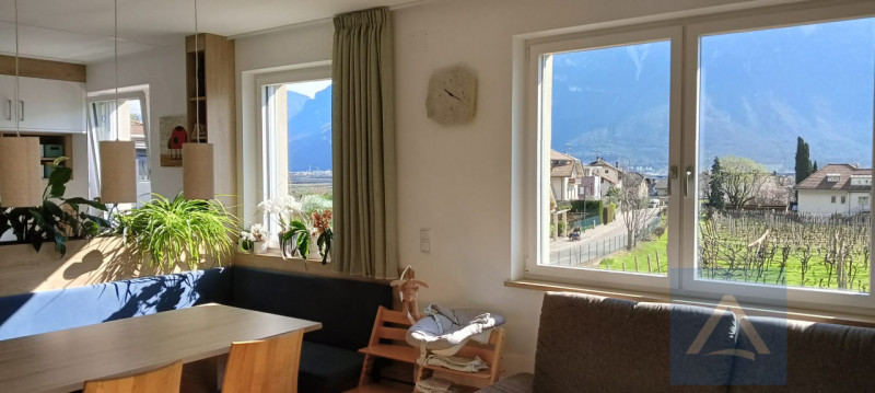 Proponiamo in vendita un elegante trilocale situato nel cuore di Magrè sulla Strada del Vino, in una posizione tranquilla immersa tra i vigneti e le montagne dell'Alto Adige. L'appartamento si trova al piano primo di una palazzina moderna realizzata nel 2022, dotata di ascensore ed accessi senza barriere architettoniche. La superficie commerciale è pari a 99 mq (74,8 mq netti) e lo stato manutentivo è eccellente: ambienti luminosissimi grazie alle ampie vetrate che regalano splendide viste sulle vigne circostanti e sulle maestose montagne. La zona giorno open space comprende soggiorno-cucina con angolo pranzo su misura affacciato sul verde; il corridoio conduce alla camera matrimoniale, alla camera singola ed al bagno finestrato moderno. Il valore aggiunto è rappresentato dal grande terrazzo ideale per momenti di relax all'aperto. Riscaldamento centralizzato a gas a pavimento integrato da pannelli solari per massima efficienza energetica; spese condominiali contenute (€160/mese). L’edificio sorge in una delle zone più ricercate della Bassa Atesina: servizi essenziali raggiungibili comodamente anche a piedi o in bicicletta; ottimo punto strategico sia per chi desidera vivere nella natura che essere ben collegati ai principali centri della provincia. Soluzione perfetta per famiglie o coppie che cercano comfort abitativo contemporaneo, sostenibilità energetica e panorama esclusivo! Per ulteriori informazioni o fissare una visita contattaci subito presso la nostra agenzia. appartamento convenzionato ai sensi dell'art.79 LP 13/1997 con possibilità di eventuale liberatoria tramite pagamento oneri al comune. Garage singolo e cantina inclusi nel prezzo!
