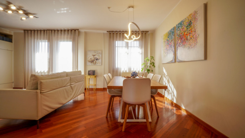 In una zona residenziale ben servita, a pochi passi da scuole, ufficio postale e stazione ferroviaria, proponiamo in vendita un ampio appartamento di circa 150 metri quadri, posto al terzo piano (sopra il rialzato) di un palazzo signorile dotato di ascensore. L'appartamento si apre su un ampio ingresso soggiorno, particolarmente luminoso grazie alla favorevole esposizione. La zona giorno comprende anche una spaziosa sala da pranzo, servita da cucinotto e veranda. La zona notte è composta da tre comode camere da letto, di cui una con bagno privato. È presente un secondo bagno, anchesso ristrutturato alcuni anni fa con la sostituzione completa delle tubature, oltre a un pratico ripostiglio. L'immobile si presenta in discrete condizioni generali, abitabile da subito, con la possibilità di eventuali interventi di ammodernamento. Completa la proprietà un comodo box auto di 20 metri quadri. La soluzione ideale per chi cerca spazi generosi, comfort e vicinanza a tutti i principali servizi.