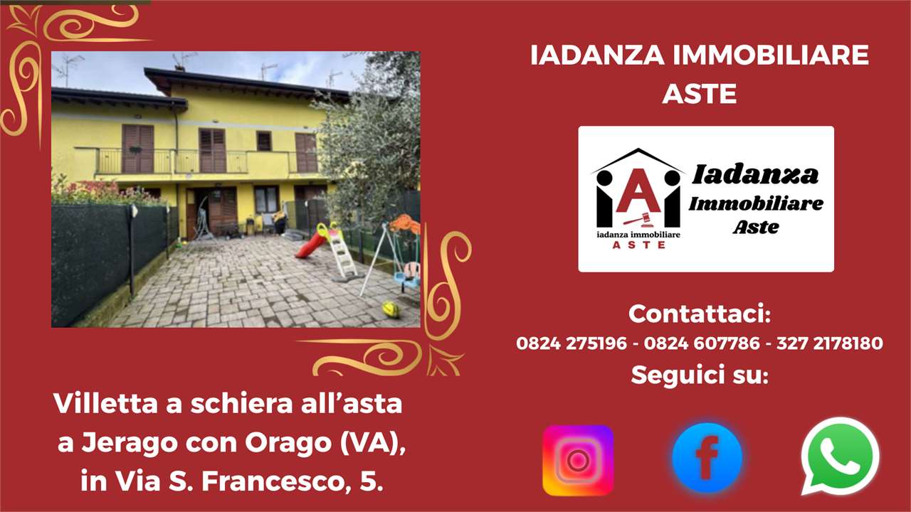 Codice Annuncio: 25VS177 Offerta Minima: 161.250,00 Prezzo Base: 215.000,00 Valore di Perizia: 230.000,00 Data e Ora dellAsta: 19/05/2026 ore 14:30 Termine Presentazione Offerte: 18/05/2026 ore 13:00 ******************************************************************************** N.B: -Le foto e la geolocalizzazione presenti negli annunci potrebbero essere solo indicative. La documentazione ufficiale invece è disponibile su richiesta e solo essa farà fede sul piano legale .CONTATTARE LO STUDIO PER CONFERMA E PER MAGGIORI INFORMAZIONI ! -La vendita allAsta dellimmobile è stata disposta dal TRIBUNALE DI COMPETENZA e presuppone che linteressato - qualora intenda partecipare in autonomia - abbia piena conoscenza e consapevolezza dei contenuti di tutta la documentazione riguardante la PROCEDURA se non intende rivolgersi ad un Professionista del Settore ! -Per avere maggiori informazioni o per richiedere un sopralluogo potrai contattarci ai seguenti recapiti : Tel: 0824.607786 - 0824.275196 - 327.2178180 Mail: info@iadanzaimmobiliareaste.com Web: www.iadanzaimmobiliareaste.com ******************************************************************************** Villetta a schiera centrale all'asta in Jerago con Orago (VA), Via San Francesco n. 5, interna al complesso residenziale "Residence Paradiso". L'immobile sorge in zona periferica a prevalente destinazione residenziale, servita da urbanizzazione primaria e secondaria, con traffico locale, parcheggi buoni e collegamenti discreti verso i centri limitrofi, tra cui Gallarate. La villetta si sviluppa su tre piani fuori terra oltre a piano interrato, con collegamento verticale tramite vano scala interno. La composizione interna è la seguente: al piano terra soggiorno con ingresso, angolo cottura, servizio igienico e giardino di proprietà su due lati; al piano primo due camere da letto, disimpegno e bagno Al piano secondo/sottotetto due locali agibili ma non abitabili e disimpegno; al piano interrato due locali ripostiglio, un locale WC, disimpegno e autorimessa collegata internamente. Completano la consistenza balconi, area nuda/giardino privato, parti comuni condominiali pro quota e box doppio al piano interrato. ////////////////////////////////SCOPRI LA DIFFERENZA//////////////////////////////////////// Perché sceglierci? PERCHE DI NOI TI PUOI FIDARE! Ti basta compilare la richiesta presente a lato dellannuncio e riceverai tutta lassistenza necessaria per ricercare ed acquistare limmobile che desideri! ////////////////// PROMOZIONI ESCLUSIVE ONLINE///////////////////////// Oltretutto Inviandoci la tua richiesta tramite il FORM DI CONTATTO, presente sulla destra di tutti gli annunci inseriti sul nostro SITO www.iadanzaimmobiliareaste.com otterrai automaticamente: - Una Consulenza gratuita iniziale. - Una polizza Protezione Casa in OMAGGIO! - La restituzione delle spese di istruttoria (solo in caso di aggiudicazione). - Uno Sconto del 3% sul nostro compenso finale. ///////////////// I NOSTRI PUNTI DI FORZA//////////////////////////////////////// Ciò che ci rende unici è il nostro approccio dedicato e professionale, nell'interesse esclusivo del cliente acquirente. Consulenza Gratuita e Professionale: Sempre disponibili per una consulenza senza impegno, con cortesia e professionalità. Indipendenza e Trasparenza: Operiamo su rappresentanza soltanto in favore dellacquirente, senza l'assillo di dover vendere a tutti i costi, garantendo imparzialità e competenze. La nostra reputazione è la tua prima garanzia. Visite Immobiliari Organizzate: Se desideri visionare un immobile, organizziamo la visita in modo completamente gratuito, occupandoci noi di tutte le formalità telematiche necessarie. Istruttoria accurata: A differenza di molti operatori del Settore che si limitano a "smaltire" immobili come "visti e piaciuti", il nostro approfondito esame della pratica (legale, tecnico, condominiale, fiscale, finanziario) ti assicurerà la tranquillità che cercavi. Noi redigiamo una "Relazione di Fattibilità Tecnico/Legale" prima di ogni partecipazione all'asta che sintetizza ogni aspetto della Procedura. Siamo gli unici insomma a "metterci la faccia". Assistenza dedicata passo dopo passo: Il nostro consulente esperto ti assiste in ogni fase, dalla ricerca all'aggiudicazione e anche oltre. Ricerca Personalizzata: Se non hai tempo per la ricerca, inviaci la tua richiesta tramite il SITO e lo faremo noi per te. Chiarezza Contrattuale: Siamo uno Studio di Consulenza Tecnico/Legale, non un'agenzia immobiliare tradizionale. Il rapporto è regolato da un incarico chiaro, sottoscritto dalle parti, senza sorprese per il Cliente. ////////////////// SERVIZI DI BASE INCLUSI/////////////////////////////////////// Offriamo un pacchetto completo per assisterti e consigliarti nella massima sicurezza: Consulenza gratuita (telefonica o su appuntamento). Analisi documentale approfondita in collaborazione con esperti legali, tecnici, notai e commercialisti. Assistenza completa per ogni adempimento: visite, pratiche, firme digitali, domande di partecipazione, saldi, tasse, consegna immobile, sanatorie, ecc. Visita dellimmobile organizzata gratuitamente dal nostro Studio in via telematica. Consulenza creditizia su misura con un esperto di Banca. Supporto Stragiudiziale per analizzare e gestire situazioni debitorie complesse. ------------------------------------------------------------------------------------------------------------------------ CONTATTACI SUBITO Per avere maggiori informazioni o per richiedere un sopralluogo potrai contattarci ai seguenti recapiti : Tel: 0824.607786 - 0824.275196 - 327.2178180 Mail: info@iadanzaimmobiliareaste.com Web: www.iadanzaimmobiliareaste.com