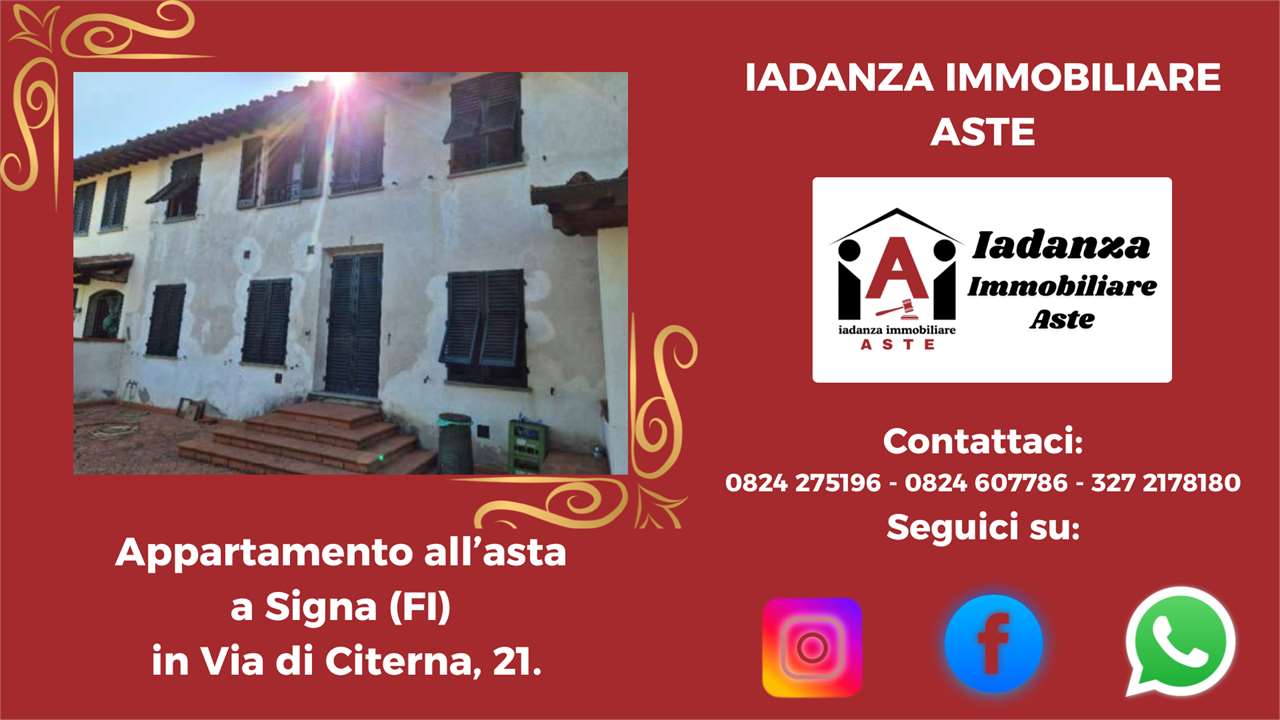 Codice Annuncio: 14ST/P590 Offerta Minima: 363.750,00 Prezzo Base: 485.000,00 Valore di Perizia: 545.000,00 Data e Ora dellAsta: 4 giugno 2026 ore 15:00 Termine Presentazione Offerte: 3 giugno 2026 ore 23:59 ******************************************************************************** N.B: -Le foto e la geolocalizzazione presenti negli annunci potrebbero essere solo indicative. La documentazione ufficiale invece è disponibile su richiesta e solo essa farà fede sul piano legale .CONTATTARE LO STUDIO PER CONFERMA E PER MAGGIORI INFORMAZIONI ! -La vendita allAsta dellimmobile è stata disposta dal TRIBUNALE DI COMPETENZA e presuppone che linteressato - qualora intenda partecipare in autonomia - abbia piena conoscenza e consapevolezza dei contenuti di tutta la documentazione riguardante la PROCEDURA se non intende rivolgersi ad un Professionista del Settore ! -Per avere maggiori informazioni o per richiedere un sopralluogo potrai contattarci ai seguenti recapiti : Tel: 0824.607786 - 0824.275196 - 327.2178180 Mail: info@iadanzaimmobiliareaste.com Web: www.iadanzaimmobiliareaste.com ******************************************************************************** Terratetto / porzione di fabbricato residenziale allasta in Signa (FI), Località Crocifisso, Via di Citerna n. 21. Limmobile sorge in zona extraurbana/semi-periferica. Labitazione si sviluppa su piano interrato (cantina e ripostigli), piano terra (ingresso, cucina; oltre soggiorno, sala da pranzo e un W.C. con accesso indipendente), piano primo (3 camere da letto, 2 bagni, guardaroba e lavanderia) e vano sottotetto (piano 2) accessibile da scala. Pertinenze/altro: resede esclusivo su due lati; area/parcheggio comune. ////////////////////////////////SCOPRI LA DIFFERENZA//////////////////////////////////////// Perché sceglierci? PERCHE DI NOI TI PUOI FIDARE! Ti basta compilare la richiesta presente a lato dellannuncio e riceverai tutta lassistenza necessaria per ricercare ed acquistare limmobile che desideri! ////////////////// PROMOZIONI ESCLUSIVE ONLINE///////////////////////// Oltretutto Inviandoci la tua richiesta tramite il FORM DI CONTATTO, presente sulla destra di tutti gli annunci inseriti sul nostro SITO www.iadanzaimmobiliareaste.com otterrai automaticamente: - Una Consulenza gratuita iniziale. - Una polizza Protezione Casa in OMAGGIO! - La restituzione delle spese di istruttoria (solo in caso di aggiudicazione). - Uno Sconto del 3% sul nostro compenso finale. ///////////////// I NOSTRI PUNTI DI FORZA//////////////////////////////////////// Ciò che ci rende unici è il nostro approccio dedicato e professionale, nell'interesse esclusivo del cliente acquirente. Consulenza Gratuita e Professionale: Sempre disponibili per una consulenza senza impegno, con cortesia e professionalità. Indipendenza e Trasparenza: Operiamo su rappresentanza soltanto in favore dellacquirente, senza l'assillo di dover vendere a tutti i costi, garantendo imparzialità e competenze. La nostra reputazione è la tua prima garanzia. Visite Immobiliari Organizzate: Se desideri visionare un immobile, organizziamo la visita in modo completamente gratuito, occupandoci noi di tutte le formalità telematiche necessarie. Istruttoria accurata: A differenza di molti operatori del Settore che si limitano a "smaltire" immobili come "visti e piaciuti", il nostro approfondito esame della pratica (legale, tecnico, condominiale, fiscale, finanziario) ti assicurerà la tranquillità che cercavi. Noi redigiamo una "Relazione di Fattibilità Tecnico/Legale" prima di ogni partecipazione all'asta che sintetizza ogni aspetto della Procedura. Siamo gli unici insomma a "metterci la faccia". Assistenza dedicata passo dopo passo: Il nostro consulente esperto ti assiste in ogni fase, dalla ricerca all'aggiudicazione e anche oltre. Ricerca Personalizzata: Se non hai tempo per la ricerca, inviaci la tua richiesta tramite il SITO e lo faremo noi per te. Chiarezza Contrattuale: Siamo uno Studio di Consulenza Tecnico/Legale, non un'agenzia immobiliare tradizionale. Il rapporto è regolato da un incarico chiaro, sottoscritto dalle parti, senza sorprese per il Cliente. ////////////////// SERVIZI DI BASE INCLUSI/////////////////////////////////////// Offriamo un pacchetto completo per assisterti e consigliarti nella massima sicurezza: Consulenza gratuita (telefonica o su appuntamento). Analisi documentale approfondita in collaborazione con esperti legali, tecnici, notai e commercialisti. Assistenza completa per ogni adempimento: visite, pratiche, firme digitali, domande di partecipazione, saldi, tasse, consegna immobile, sanatorie, ecc. Visita dellimmobile organizzata gratuitamente dal nostro Studio in via telematica. Consulenza creditizia su misura con un esperto di Banca. Supporto Stragiudiziale per analizzare e gestire situazioni debitorie complesse. ------------------------------------------------------------------------------------------------------------------------ CONTATTACI SUBITO Per avere maggiori informazioni o per richiedere un sopralluogo potrai contattarci ai seguenti recapiti : Tel: 0824.607786 - 0824.275196 - 327.2178180 Mail: info@iadanzaimmobiliareaste.com Web: www.iadanzaimmobiliareaste.com