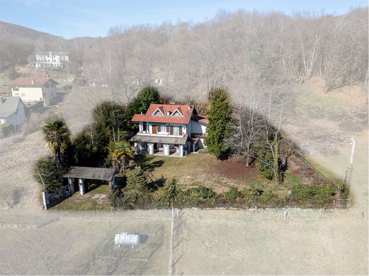 Nella prima collina di Massino Visconti, nel verde e nel silenzio della campagna circostante, con gradevole vista sul lago e sulle montagne, soleggiata e riservatissima villa indipendente inserita in un terreno di circa 1950 mq. in parte a prato e in parte a bosco. La villa ha una metratura commerciale di circa 250 mq. comm. e si compone come segue: al piano terreno, con accesso da porticato, troviamo un ampio soggiorno con cucina e camino, un disimpegno, un bagno e accesso diretto al garage oltre altro porticato ideale per ricovero auto al piano primo, non collegato al piano terreno da scala interna, con accesso da panoramico terrazzo vista lago, troviamo l'ampia e luminosa zona giorno con angolo cottura e camino, un disimpegno, un bagno e due camere da letto. Una scala a chiocciola collega internamente il piano primo al piano secondo mansardato dove troviamo un autorizzato open space ad abitazione attualmente con due camere separate da pareti in legno). La casa è stata ristrutturata ed ampliata al piano primo negli anni duemila mentre il resto è presumibilmente originario degli anni settanta. Ottima soluzione per chi ama la privacy e riservatezza e per la costruzione di una piscina.