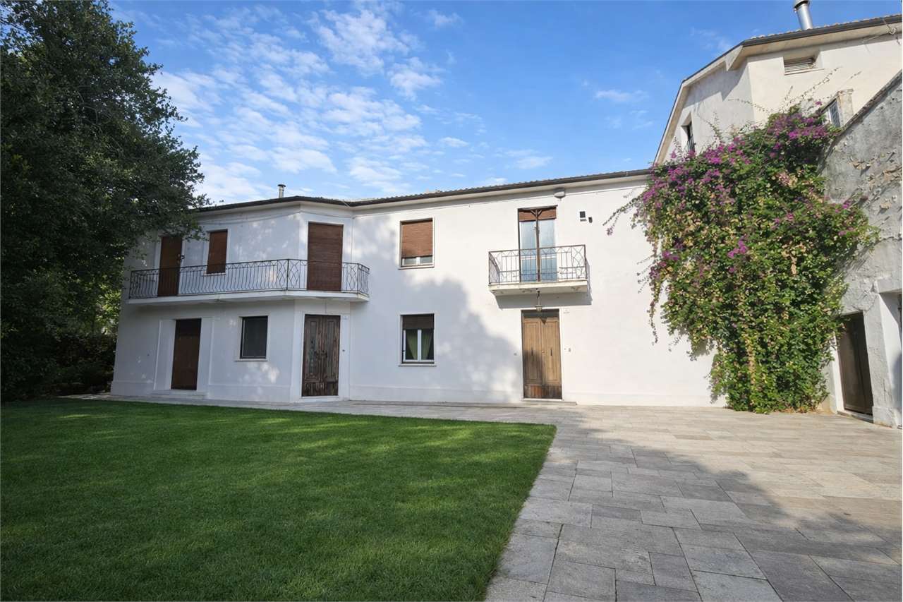 San Martino. Via Chiesa, pieno centro paese adiacente ai servizi primari, vendesi ampia porzione di casa indipendente libera su tre lati, con scoperto privato esclusivo e doppio garage. L'immobile verrà venduto ristrutturato a spese e cure del proprietario attuale (verranno rifatti completamente: pavimenti, bagno e rivestimenti bagno, impianto idraulico, impianto elettrico, caldaia, porte interne) è possibile fornire capitolato lavori. Ingresso dalla corte di proprietà al piano terra con accesso ad un disimpegno ed al primo garage. Al livello superiore: ingresso su ampio disimpegno, luminoso salone, sala da pranzo con angolo cottura, terrazzo verandato con predisposizione cucina esterna, ampio terrazzo esterno abitabile, due camere da letto matrimoniali, studio, spazioso bagno finestrato. Completano nella corte un secondo garage ed un magazzino. Ampio giardino interno. Split aria condizionata. Utenze autonome. Per maggiori informazioni sull'immobile e sui lavori di ristrutturazione contattare i ns uffici.