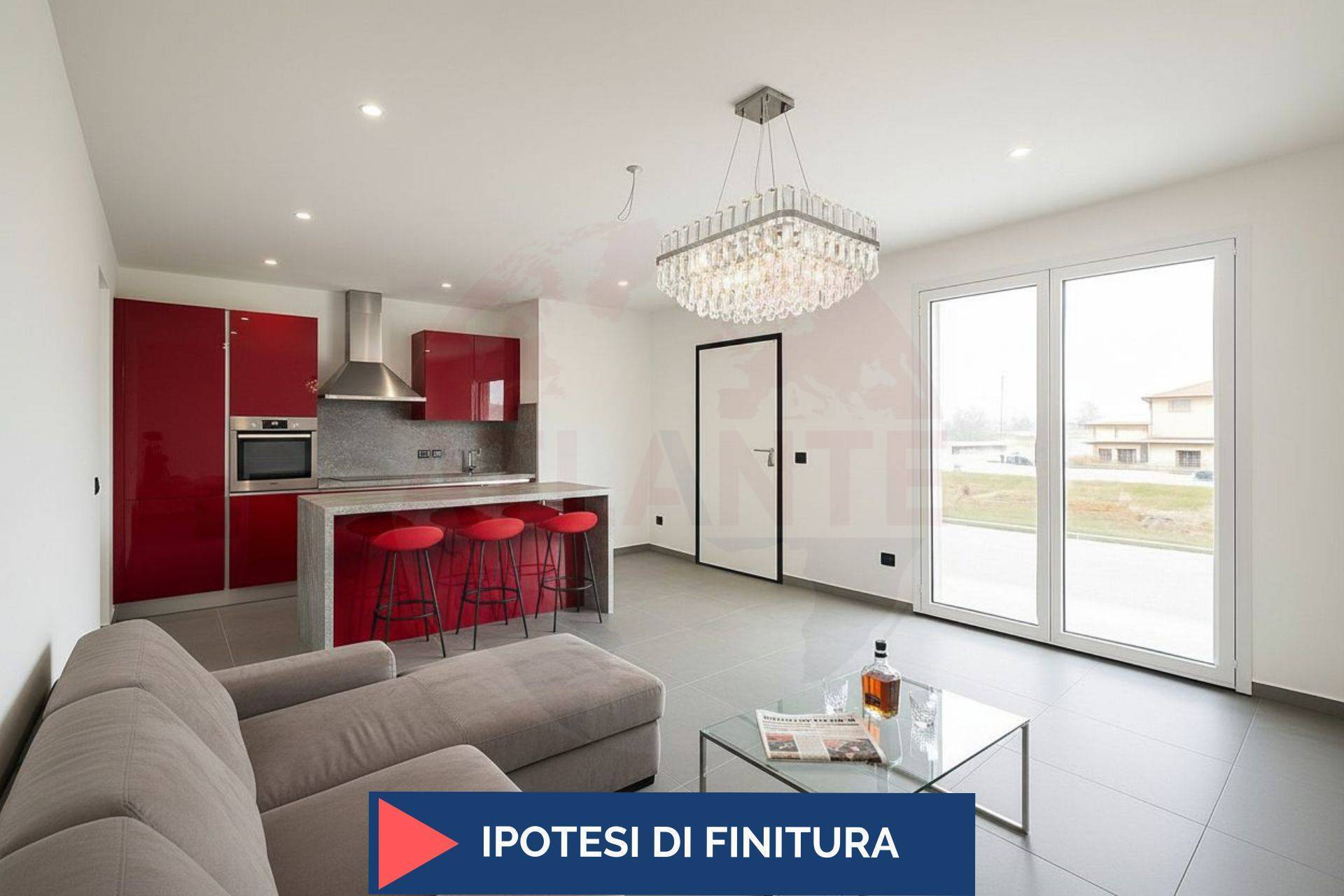 RIF. R.D.<br><br><strong style="background-color: rgb(255, 255, 255);">Nuovo appartamento trilocale al piano primo</strong>, inserito in contesto trifamigliare di nuova edificazione a Castrezzato.<br><br>Ecco subito tutti i vantaggi di questa splendida soluzione:<br>- assenza di spese condominiali<br>- miglior privacy e confort abitativo<br>- autonomia gestionale<br>- maggior valore immobiliare; il contesto trifamigliare mantiene o incrementa il proprio valore nel tempo grazie alla maggior privacy rispetto ai complessi condominiali.<br><br>Questa soluzione; totalmente indipendente e dalla metratura commerciale di 170 mq; propone un progetto moderno ma al contempo elegante, è in edificazione nel comune di Castrezzato, e l'appartamento in questione è situato al piano primo con ingresso e vano scala indipendente.<br><br>L'appartamento è così composto: Ingresso in spaziosa e luminosa zona giorno open space con accesso alla loggia che prosegue come balcone per un tot. di 23 mq, disimpegno, camera padronale con cabina armadio e accesso al grande balcone sul retro, camera doppia e bagno con doccia.<br><br>Il vano scala privato, conduce al piano interrato dove si trovano il locale cantina, la centrale termica-zona alloggio apparecchiature tecnologiche e box da 50 mq dotato di porta sezionale motorizzata.<br>L'appartamento si distingue per l'ottimo capitolato delle opere e delle finiture, con materiali di alta qualità e un design moderno ma elegante. L'impiantistica all'avanguardia garantisce un alto risparmio energetico, rendendo l'abitazione efficiente e sostenibile.<br><br><strong><u>Si riportano alcune specifiche:</u></strong><br><br>Riscaldamento a pavimento, pompa calore con accumulo 300 lt, predisposizione impianto di raffrescamento per acqua split, sistema ad induzione, impianto fotovoltaico 6 kw, serramenti in pvc con vetro basso emissivo a camera doppia, tapparelle motorizzate in alluminio coibentato, portoncino blindato, soglie e davanzali in pietra Gaya Grey.<br>La posizione è ottimale grazie alla vicinanza al raccordo A35, che consente di raggiungere rapidamente le città di Brescia e Bergamo.<br><br>Questa soluzione è ideale per chi cerca un'abitazione confortevole e di qualità, inserita in un contesto tranquillo e ben collegato.<br>Contattaci per tutte le info e per visionare il capitolato delle opere ed alcuni studi degli interni dedicati all'immobile.<br><br><strong>N.B. Le immagini 3D di arredo interno, sono ad esclusivo scopo illustrativo al fine di dare delle ipotesi di utilizzo degli spazi.</strong>