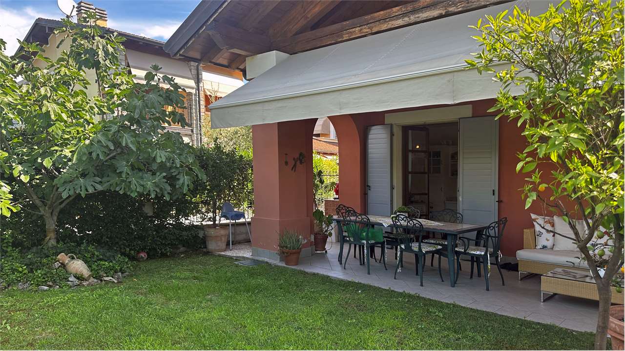 Villetta di testa con piscina in residence esclusivo indipendenza, comfort e finiture di pregio! Allinterno di un elegante e riservato residence con grande piscina e area relax, proponiamo in vendita raffinata villetta di testa libera su tre lati, ideale per chi desidera indipendenza, tranquillità e spazi ben distribuiti. La villetta è disposta su piano unico con una luminosa zona giorno open space arricchita da una cucina a vista di design, ambiente perfetto per accogliere amici e familiari. Le generose dimensioni consentono la realizzazione di una camera aggiuntiva, senza compromettere la vivibilità della zona living che ha laccesso diretto al grande portico coperto, ideale per pranzi e cene allaperto, completo di zona barbecue. La zona notte al piano terra comprende una camera matrimoniale ed un bagno finestrato con un'ampia doccia. Al piano superiore, in un curato sottotetto mansardato, troviamo una seconda camera da letto con bagno privato, perfetta come suite padronale o stanza per ospiti. Completa la proprietà un piano interrato ben organizzato con: unulteriore camera per gli ospiti, un bagno/lavanderia e laccesso diretto al garage doppio. Finiture di alto livello: pavimenti in parquet, aria condizionata, camino, zanzariere e infissi in PVC a risparmio energetico. Contesto curato, piscina condominiale di ampia metratura con zona solarium, aree verdi e atmosfera riservata. Soluzione ideale per famiglie o coppie alla ricerca di un'abitazione pronta da vivere, con spazi esterni godibili e comfort moderni. Contattaci ora per maggiori informazioni o per fissare una visita!