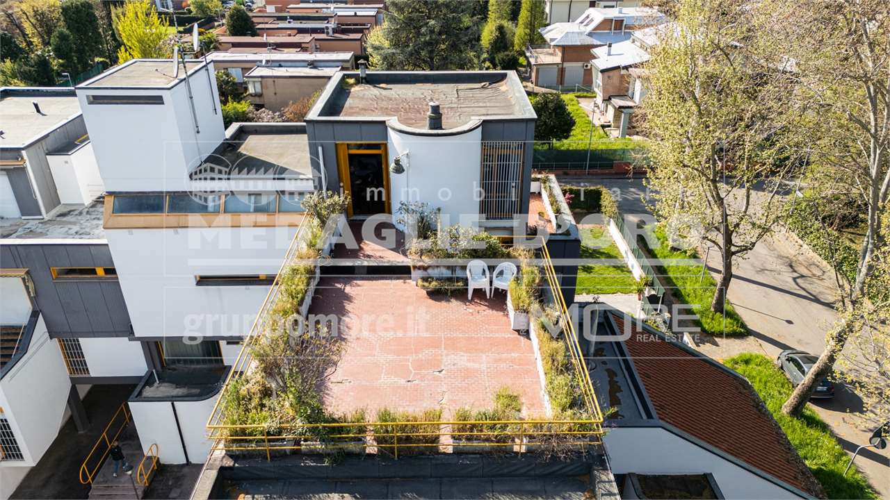 VD4659 VILLAGGIO ZETA libero attico di ampie dimensioni completamente immerso nel verde posto al terzo piano con ascensore e composto da ingresso, ampio salone con terrazzo di 38 mq, camera disimpegnata con bagno privato, cucina, terrazzino di 8 mq, disimpegno, tre camere da letto e bagno, sovrastante piano quarto collegato internamente da scala a giorno con ampio soggiorno e terrazzo di 60 mq. Completa la proprietà un garage doppio in lunghezza ed un'ampia cantina di 40 mq posti al piano seminterrato. Il contesto è molto ben abitato. L'immobile è da ristrutturare e si presta per essere un oggetto molto esclusivo. La zona è molto verdeggiante e ben servita. Euro 560.000